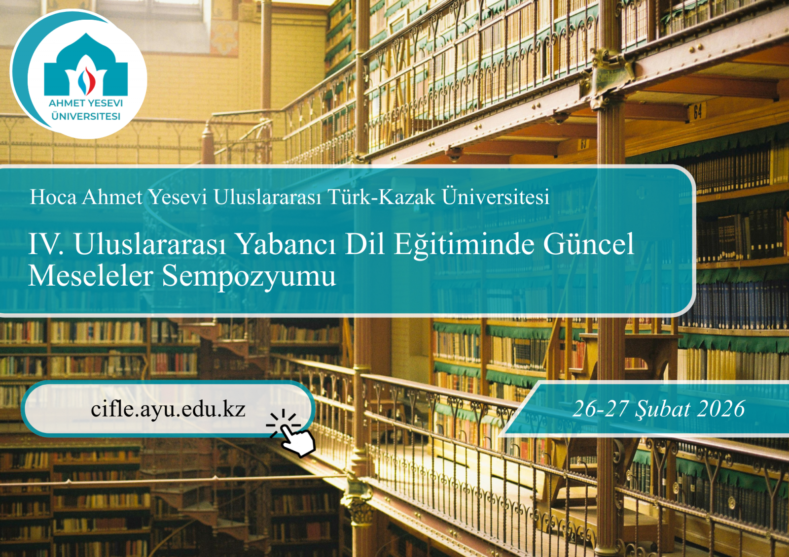Dil eğitimcileri, araştırmacılar, uzmanlar ve akademisyenler Hoca Ahmet Yesevi Uluslararası Türk-Kazak Üniversitesi Filoloji Fakültesi Yabancı Diller Eğitimi Bölümü tarafından düzenlenen "Yabancı Dil Eğitiminde Güncel Meseleler - 2026" başlıklı 4. Uluslararası Bilimsel Sempozyumuna bildirilerini sunmaya davetlidir.